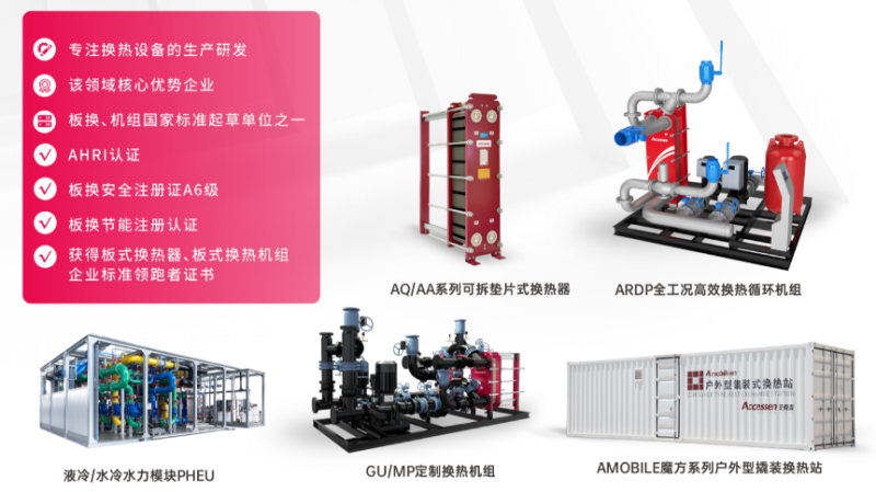 本次會議重點展示了三大核心產(chǎn)品線,板式換熱器與板式換熱機組,預制化集成式冷卻系統(tǒng)。在暖通空調(diào)行業(yè),經(jīng)濟、安全、可靠的可拆墊片式換熱器能夠滿足大部分的場合應用,由板片采用帶免粘式墊片組成換熱核心元件,這種類型的換熱器具有非常高的傳熱系數(shù),同時有非常好的經(jīng)濟性價比,在HVAC使用過程中經(jīng)濟安全可靠和拆洗維護方便等特點,艾克森還有滿足AHRI認證的系列換熱器,能更好的滿足高性能小溫差的高端需求。艾克森GU/MP系列換熱機組結(jié)合領先的技術(shù)以及豐富的經(jīng)驗和站在行業(yè)的前沿的高度選配,同時設計優(yōu)化制冷空調(diào)系統(tǒng)的節(jié)能潛力,優(yōu)化輸配系統(tǒng)阻力和仿真運行,切實降低設備運行能耗。預制化解決方案通過模塊化設計、預制化組裝,大大減少了現(xiàn)場施工和安裝的難度,提高項目質(zhì)量和確保項目快速安裝和交付,降低項目實施風險。